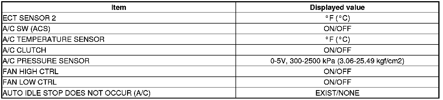 The A/C system data that can be monitored to HDS PGM-FI Data List.