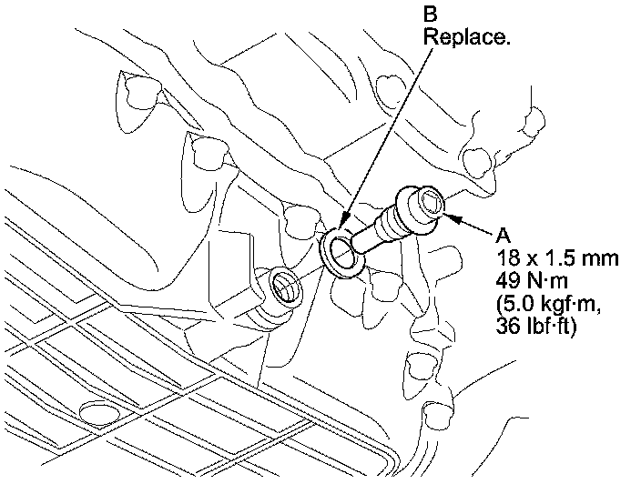 2. Remove the drain plug (A), and drain the CVT fluid (CVTF).
