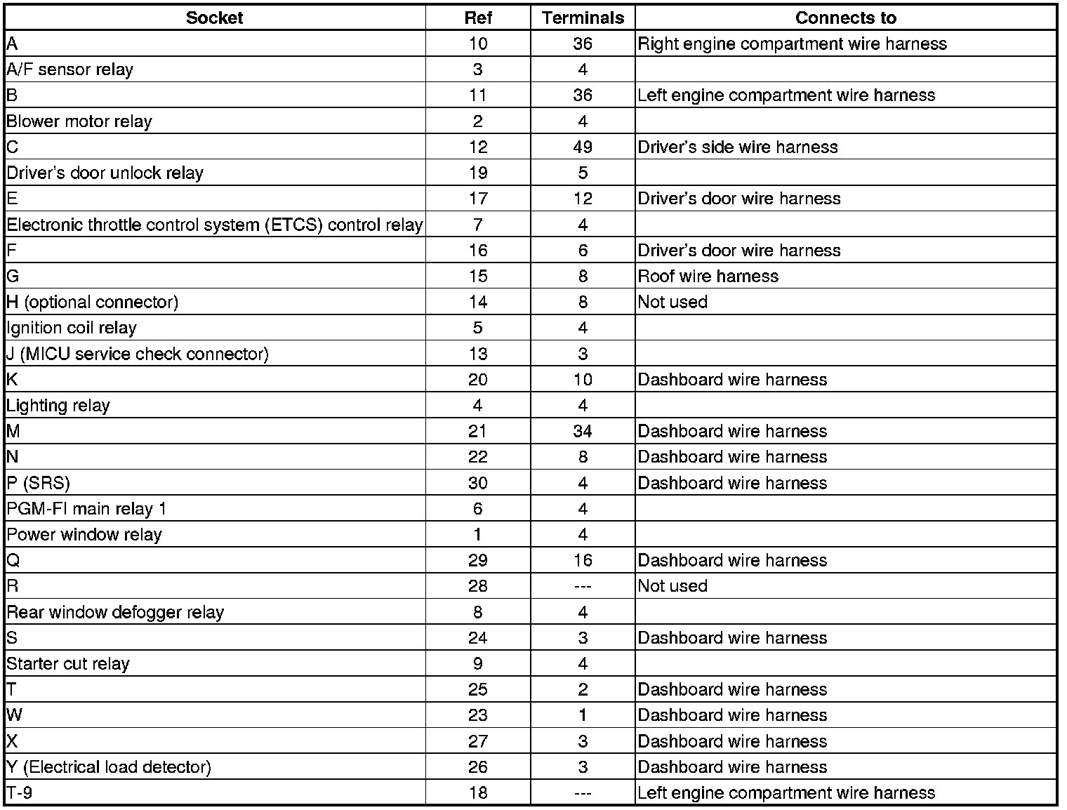 Fuse/Relay Box Connector Locations