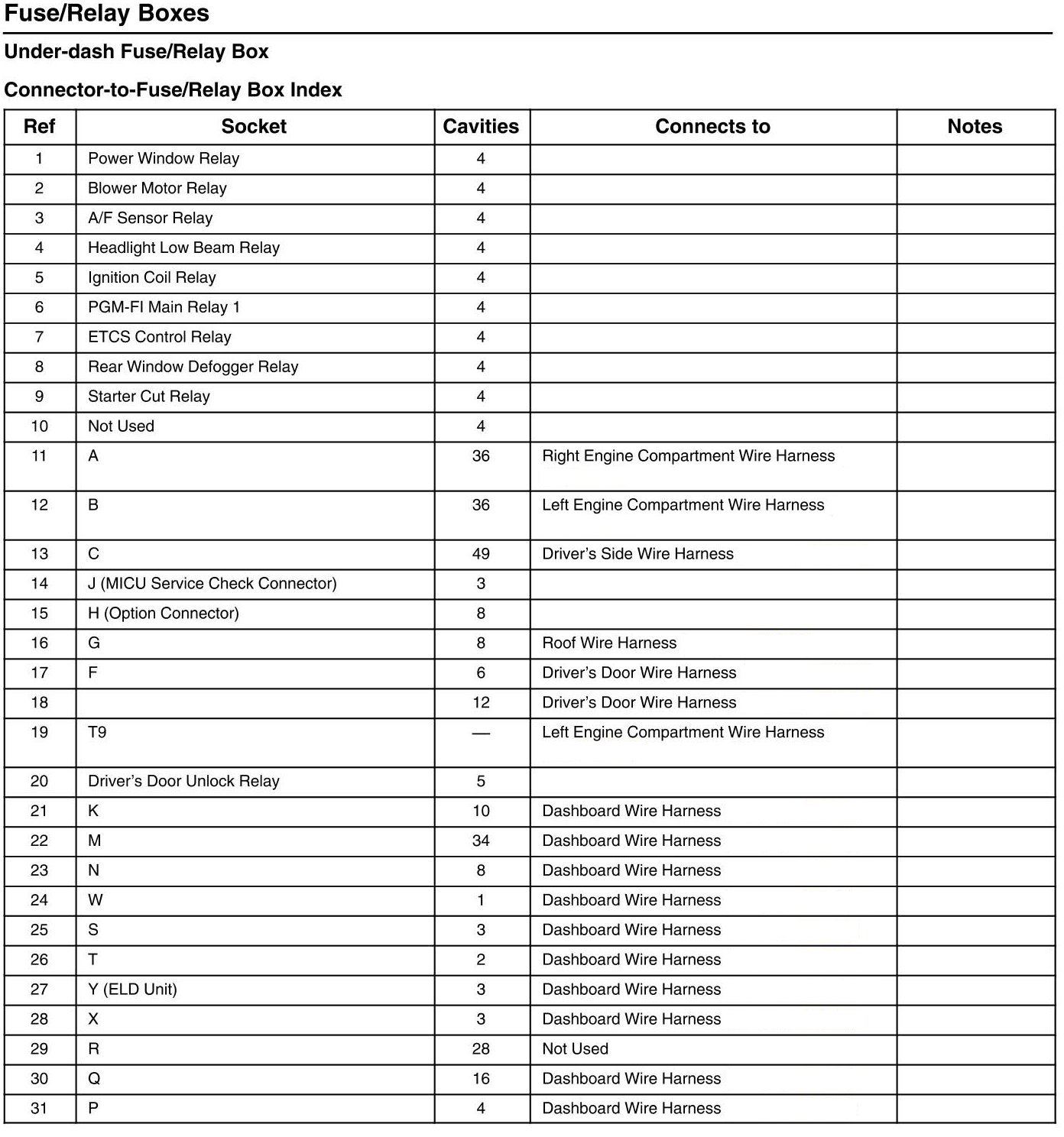 Under-Dash Fuse/Relay Box - Connector-To-Fuse/Relay Box Index