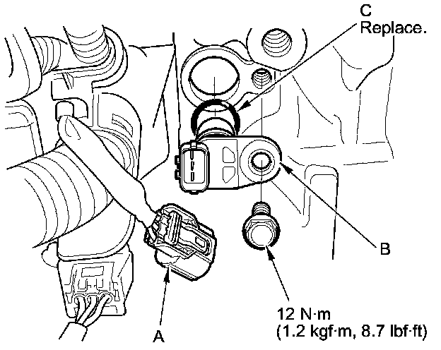 5. Install the sensor in the reverse order of removal with a new O-ring (C).