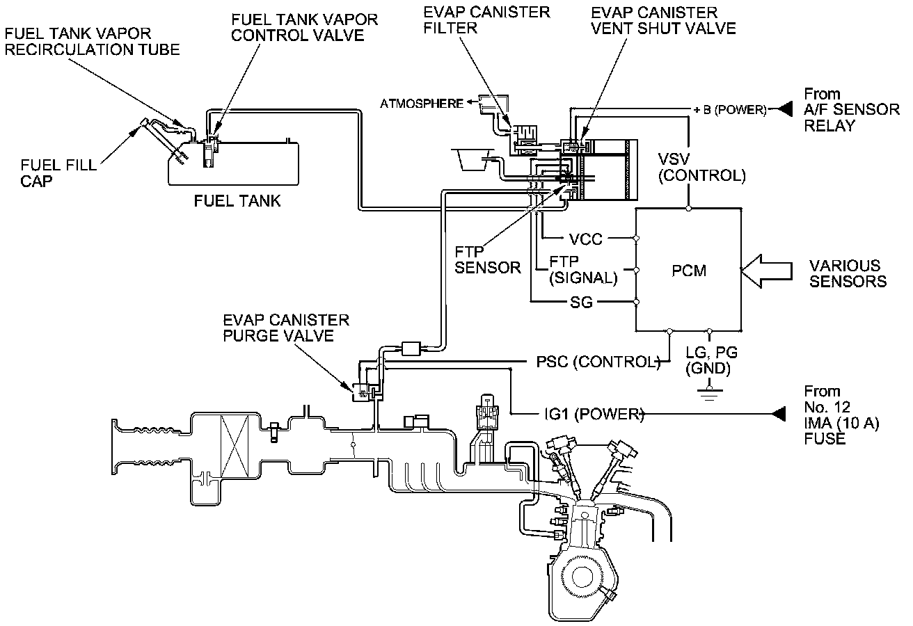 The EVAP controls minimize the amount of fuel vapor escaping to the atmosphere. Vapor from the fuel tank is temporarily stored in the EVAP canister until it can be purged from the canister into the engine and burned.