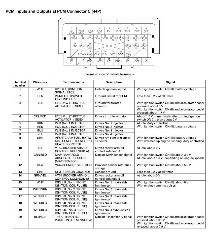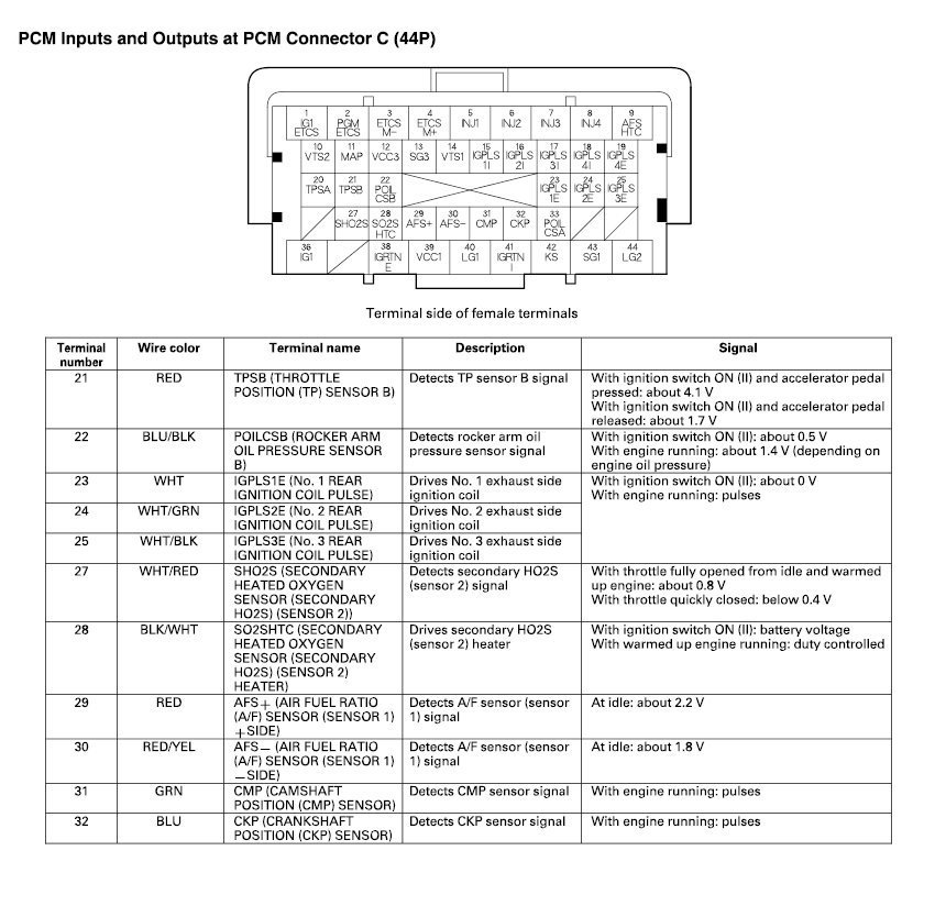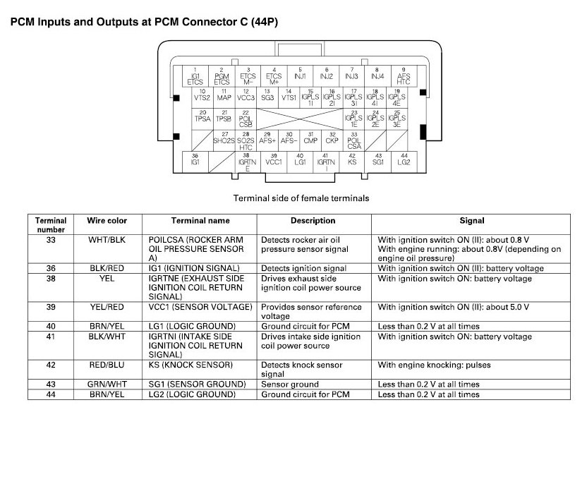 PCM Inputs And Outputs At Connector C