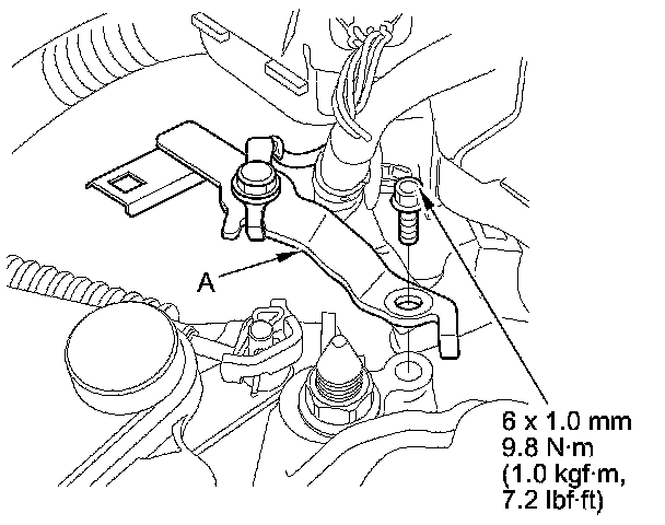 5. Remove the ground terminal bracket (A) from the transmission mount (B).