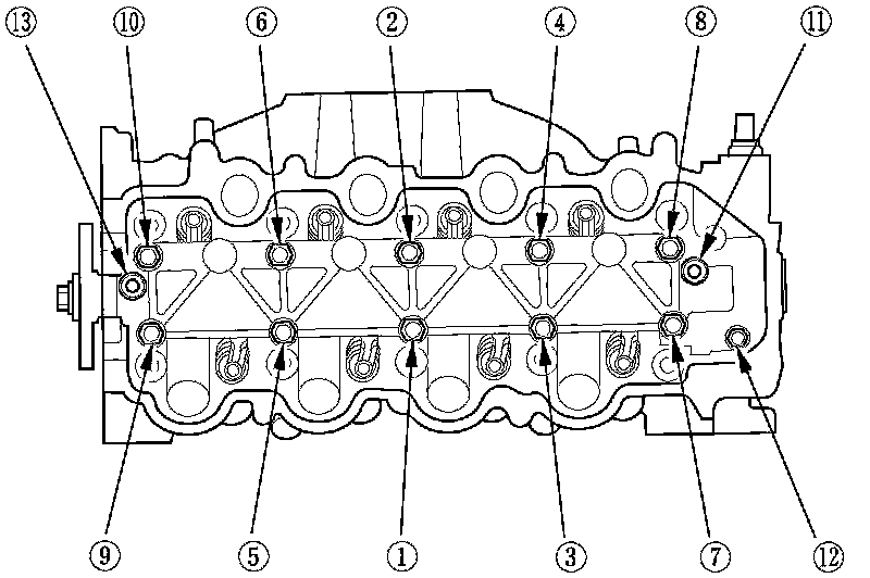 Torque the cylinder head bolts in sequence to 29 N-m (3.0 kgf-m, 22 lbf-ft)
