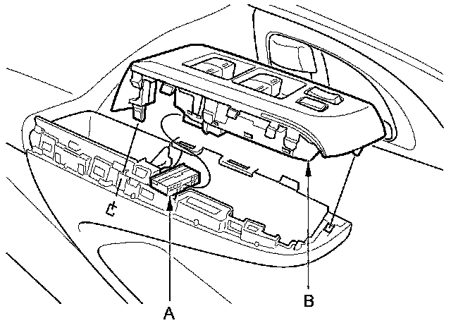 3. Disconnect the 22P connector (A) from the power window master switch (B).