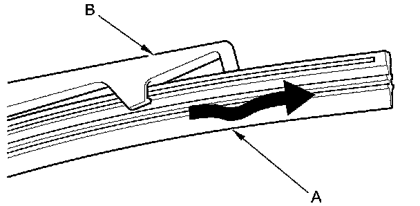 2. Slide the wiper blade (A) out from the wiper blade holder (B).