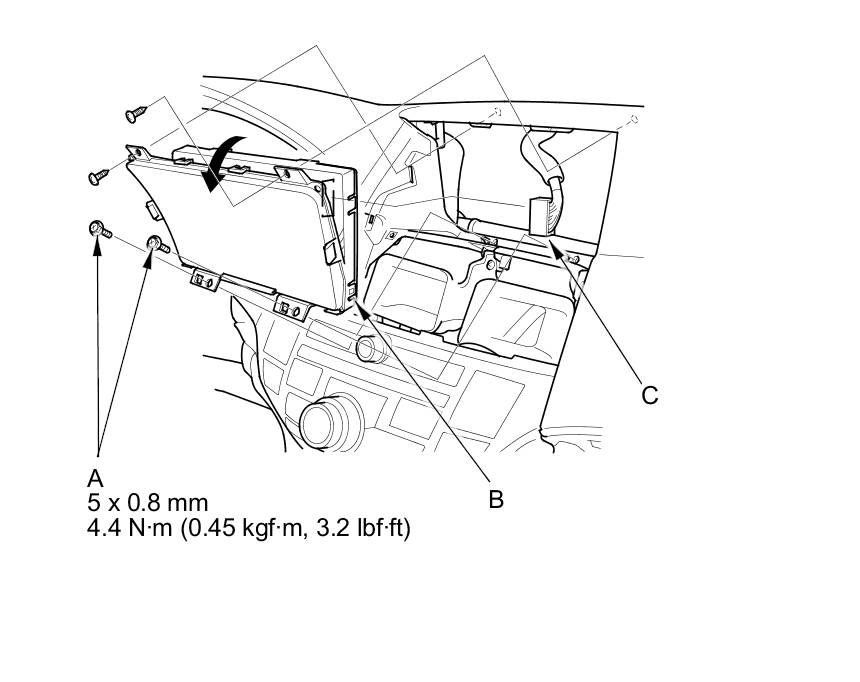 3. Disconnect the connector (C), and remove the navigation display unit.