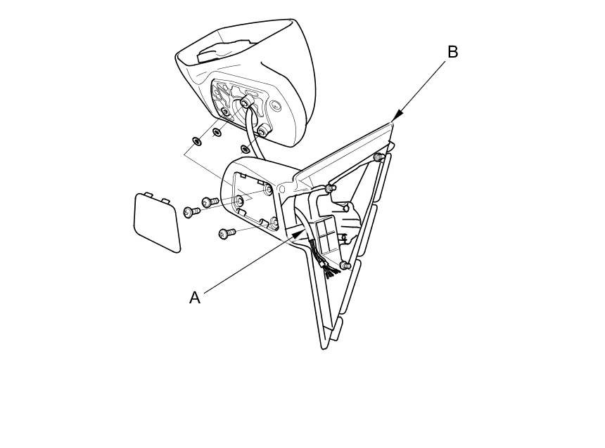 3. Reassemble the mirror in the reverse order of removal. Apply LOCTITE to the three screws (B) and tighten to 4.4 Nm (0.45 kg-m, 3.2 lb-ft).