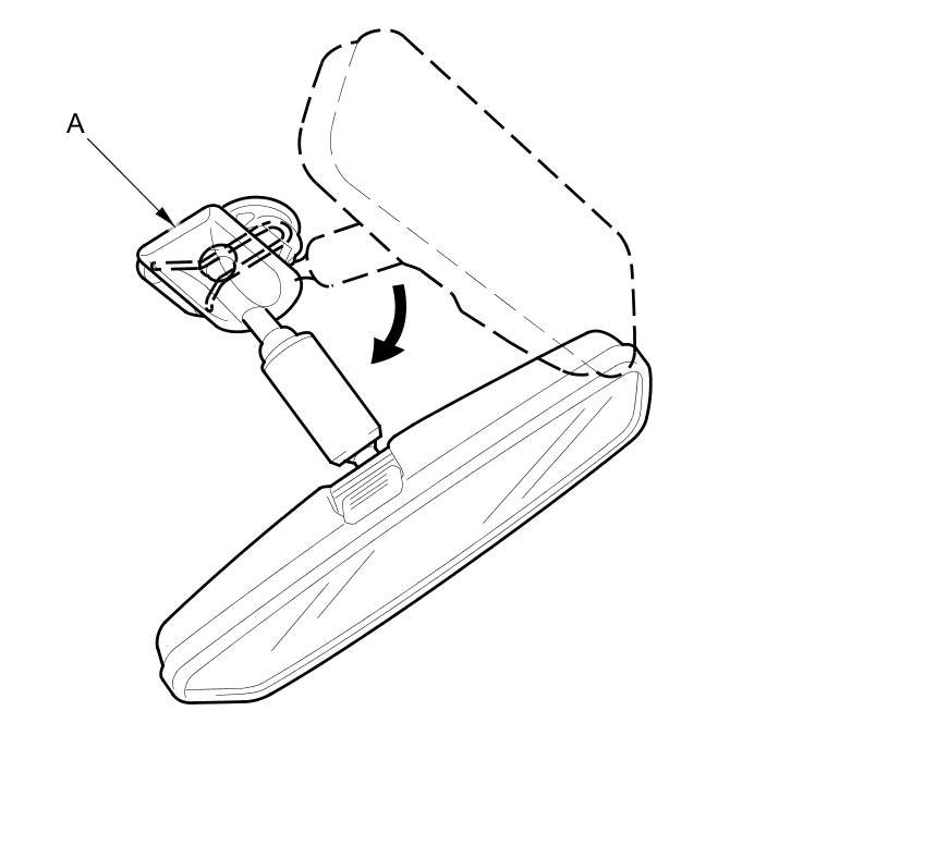 1. Turn the rearview mirror base (A) 90 °.