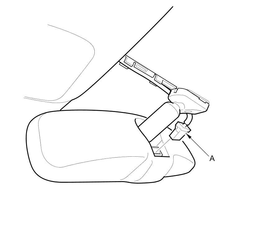 2. Disconnect the rearview mirror connector (A).