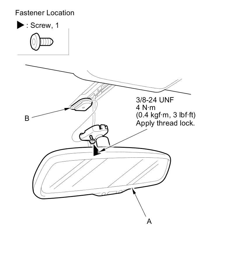 3. Loosen the screw with a TORX T20 bit, then slide the rearview mirror (A) rearward and off the mount (B).