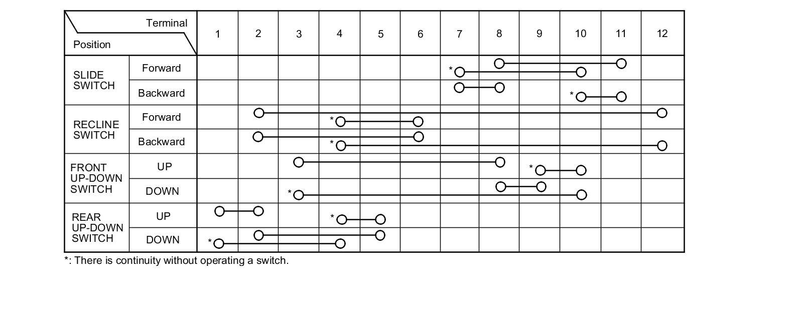 4. Disconnect the 12P connector from the power seat adjustment switch.