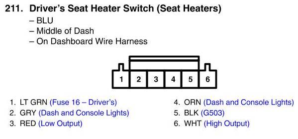 View 211 - Driver's Seat Heater Switch Connector View (Seat Heaters)