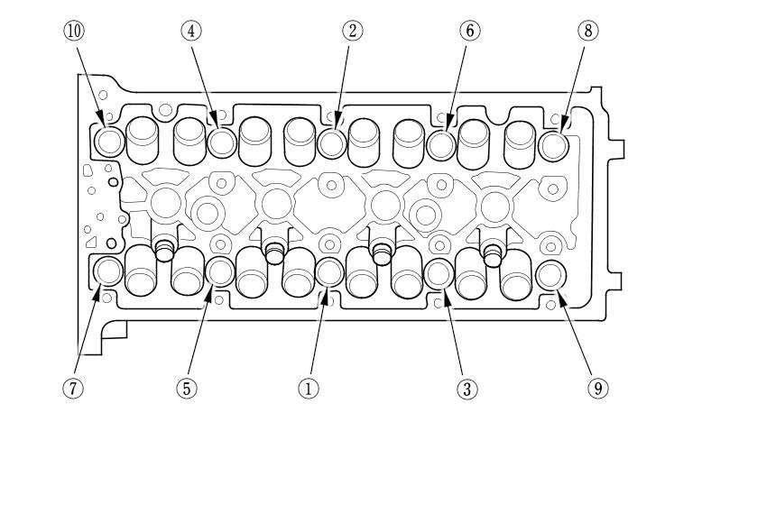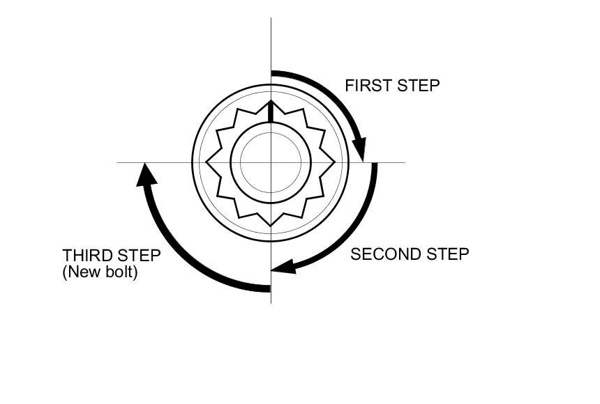 After torquing, tighten all cylinder head bolts in two steps (90 ° per step) using the sequence shown in step 9. If you are using a new cylinder head bolt, tighten the bolt an extra 90 °.