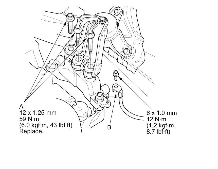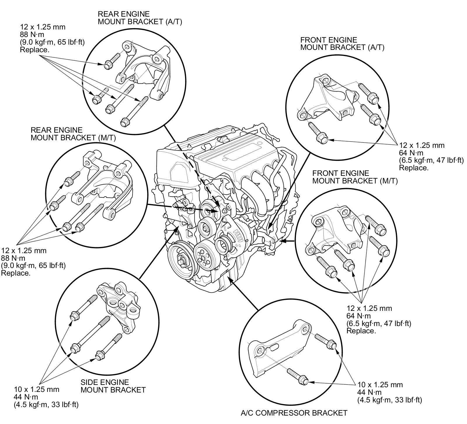 NOTE: Reinstall the mounting bolts/support nuts in the sequence given in the following steps. Failure to follow this sequence may cause excessive noise and vibration, and reduce engine mount life.