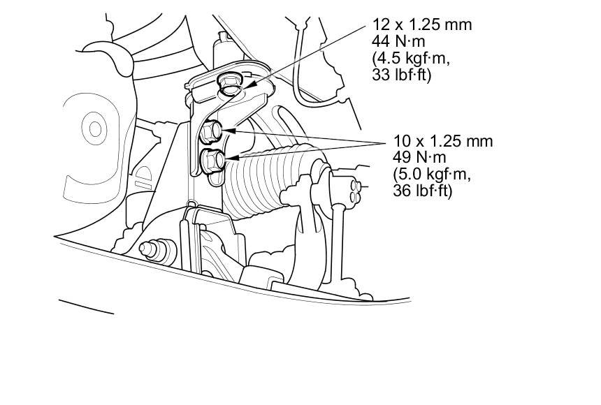 34. Loosen the upper transmission mount bracket mounting bolts, then retighten them to the specified torque.