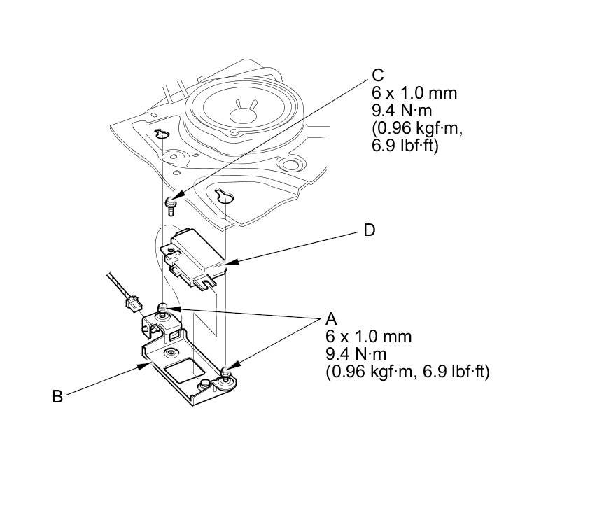 3. Disconnect the connector, and remove the bolt (C), then pull out the electrical compass unit (D).