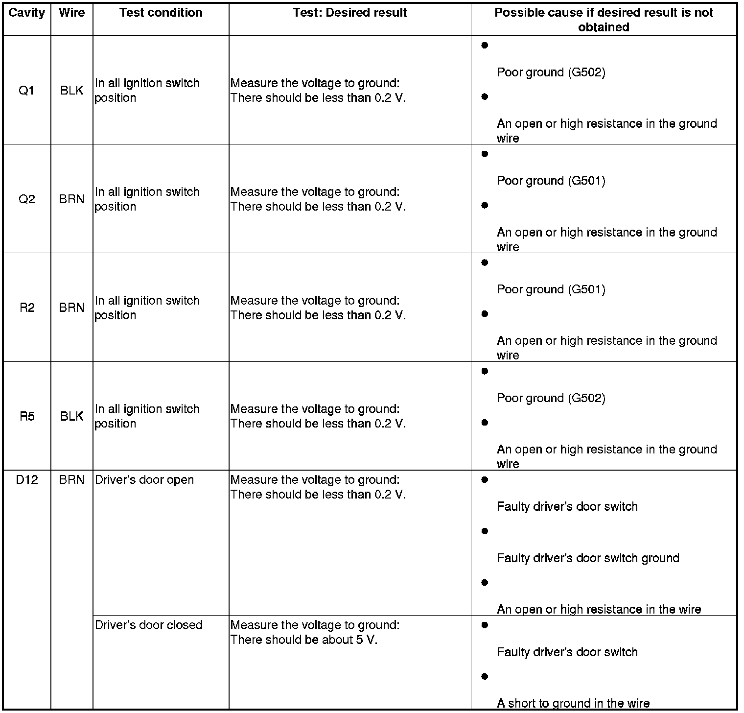 Reminder Systems (Drivers MICU and Gauge Control Module) Input Test