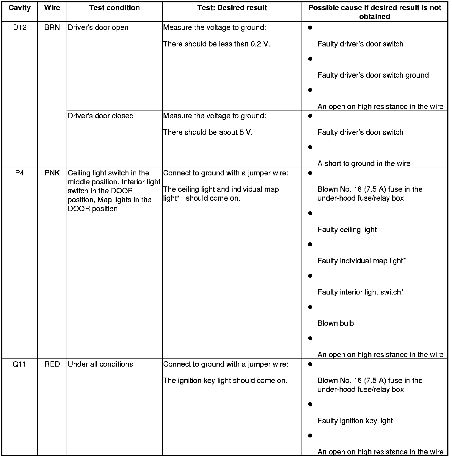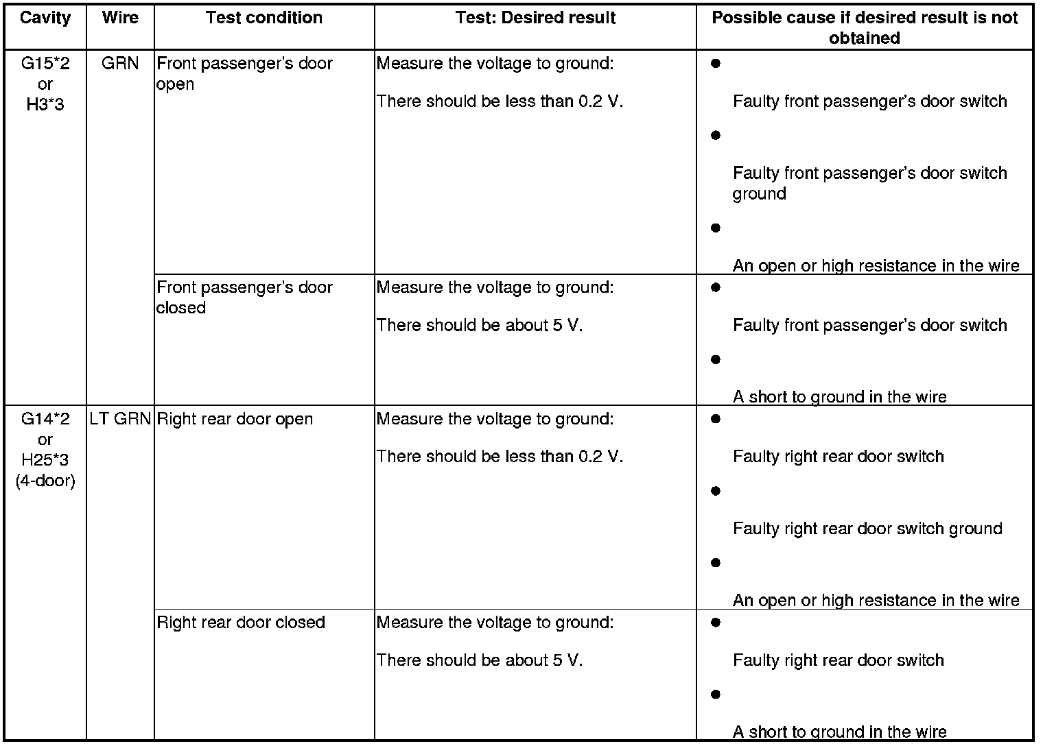 Entry Lights Control System (Drivers and Passengers MICU, and Door Multiplex Control Unit) Input Test