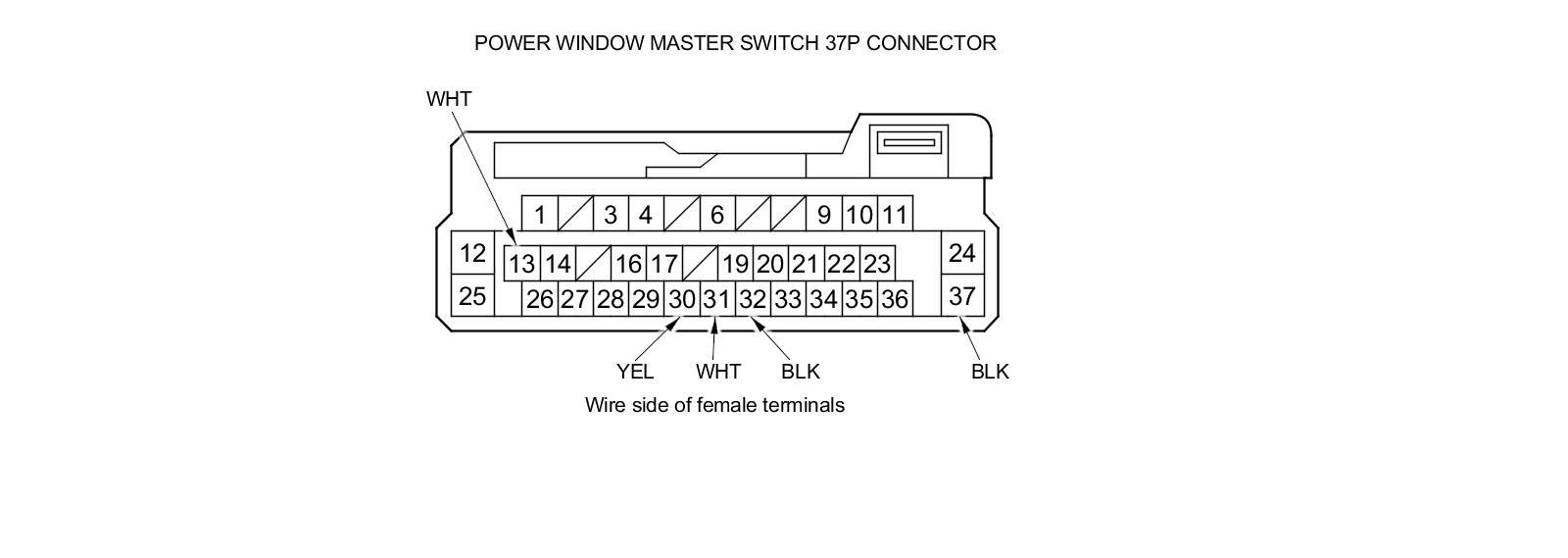 15. Reconnect the 37P connector to the power window master switch, and do the following input tests: