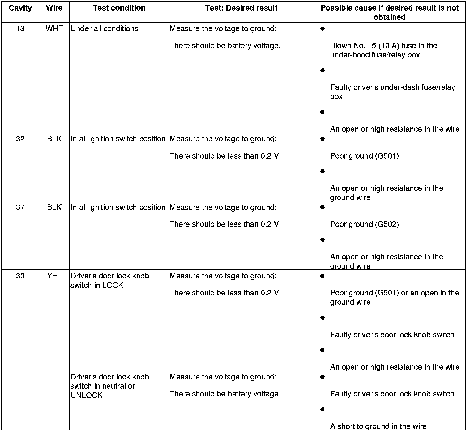 5. Reconnect the connectors to the driver's under-dash fuse/relay box, and do the following input tests: