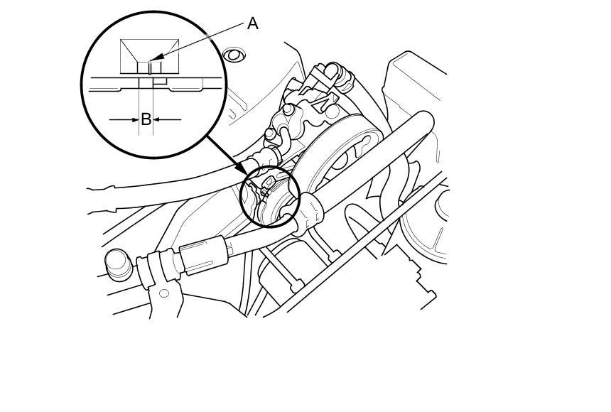 2. Check that the position of the auto-tensioner indicator's pointer (A) is within the standard range (B) as shown. If it is out of the standard range, replace the drive belt Service and Repair.