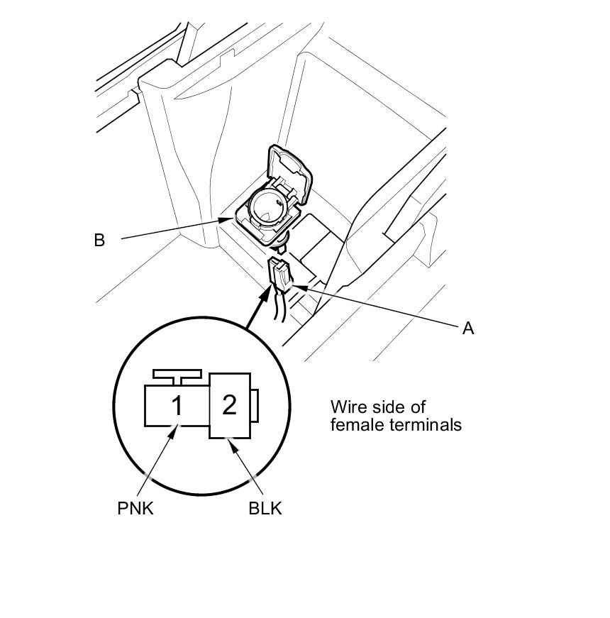 6. Measure the voltage between console accessory power socket 2P connector terminal No. 1 and body ground. There should be battery voltage.