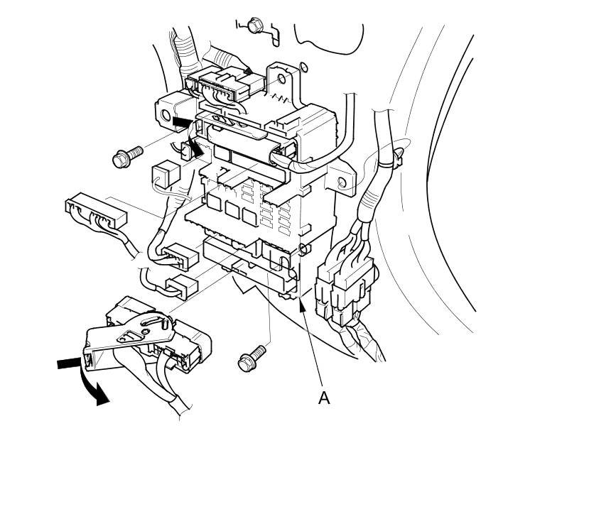 3. Disconnect the connectors from the passenger's under-dash fuse/relay box (A).