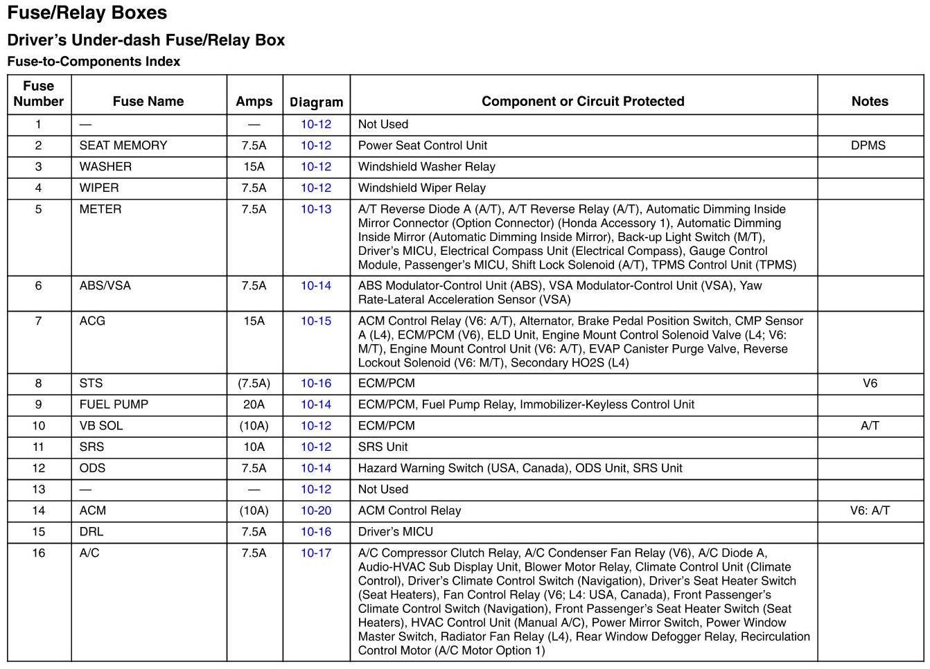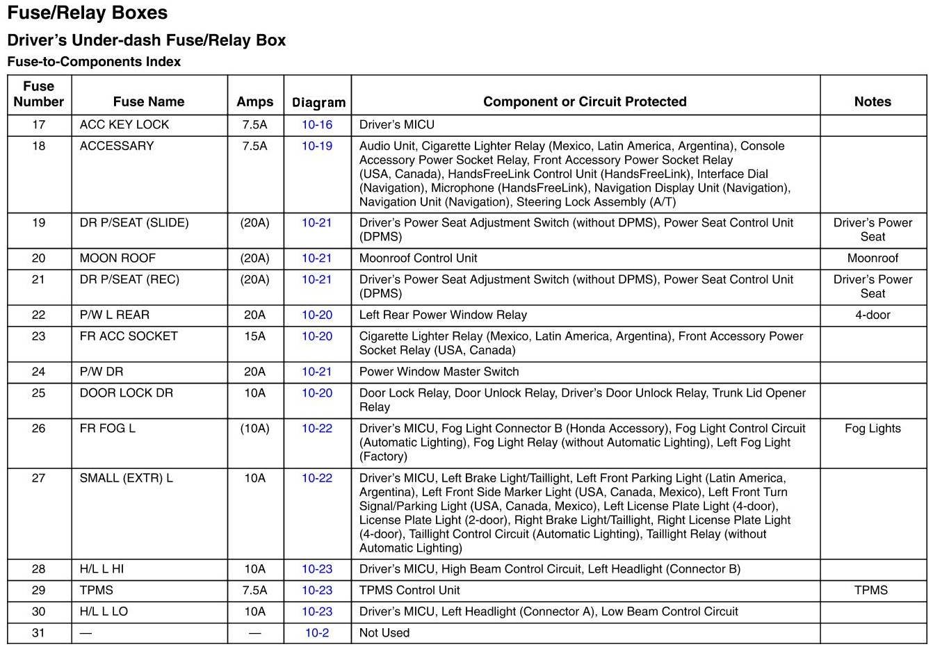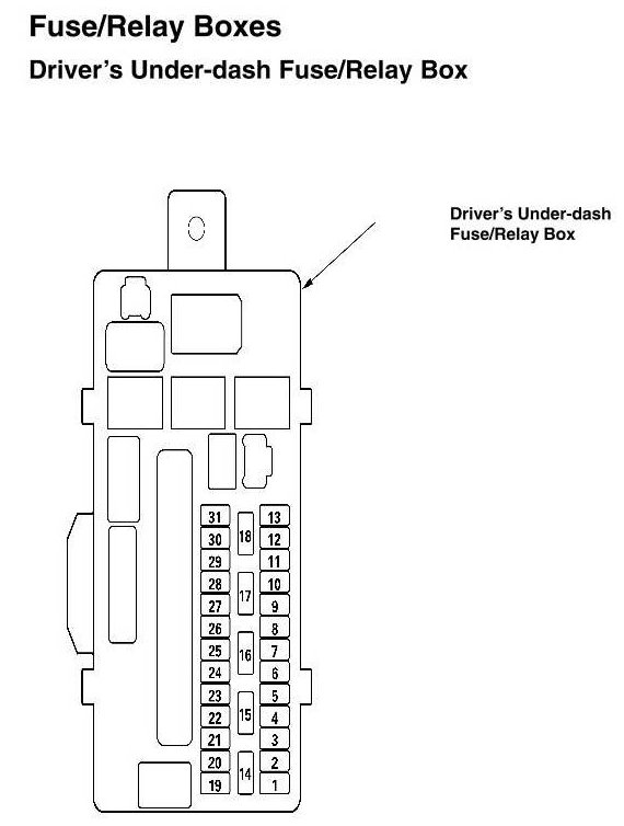 Driver's Under-dash Fuse/Relay Box - Fuse-to-Components Index