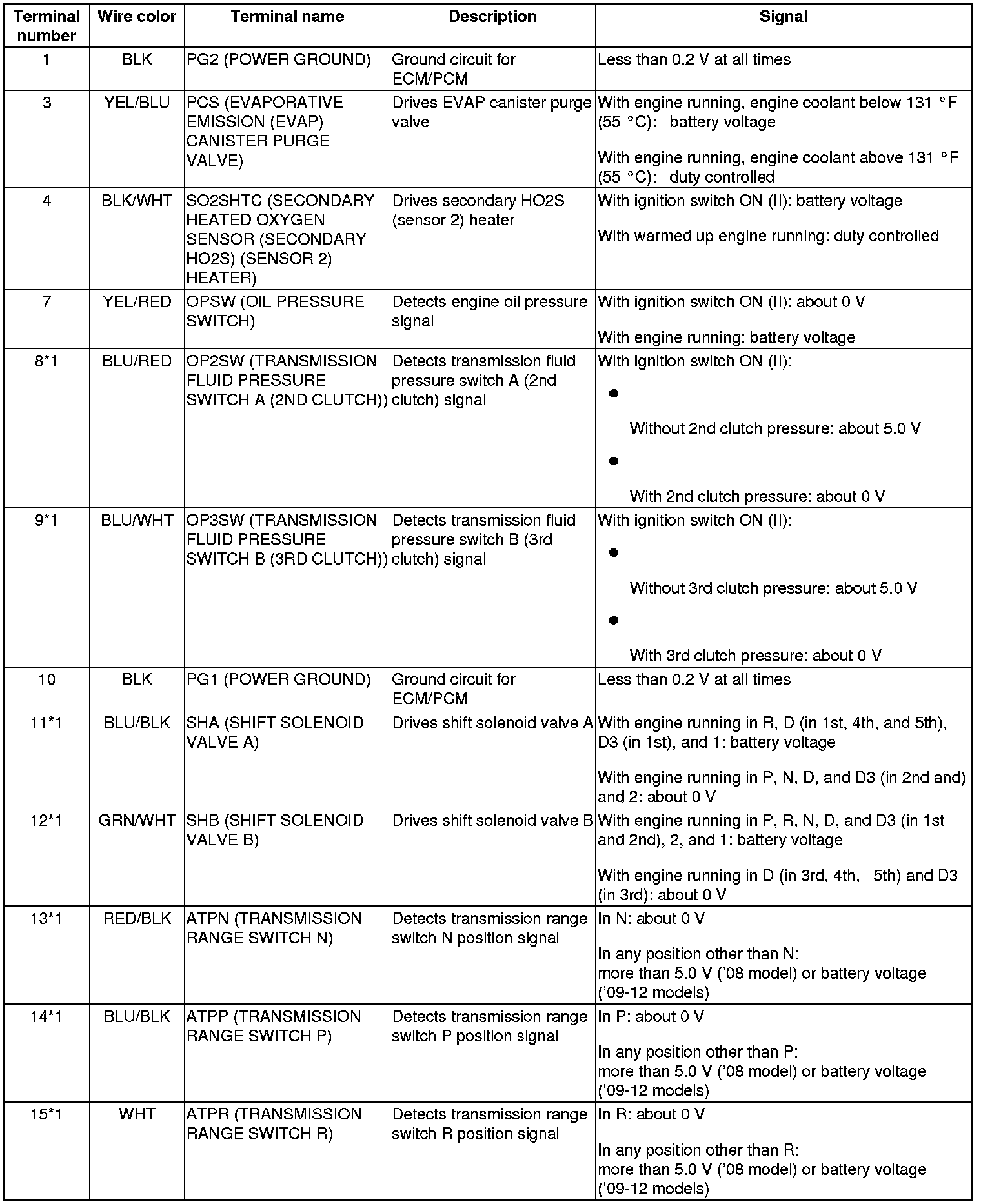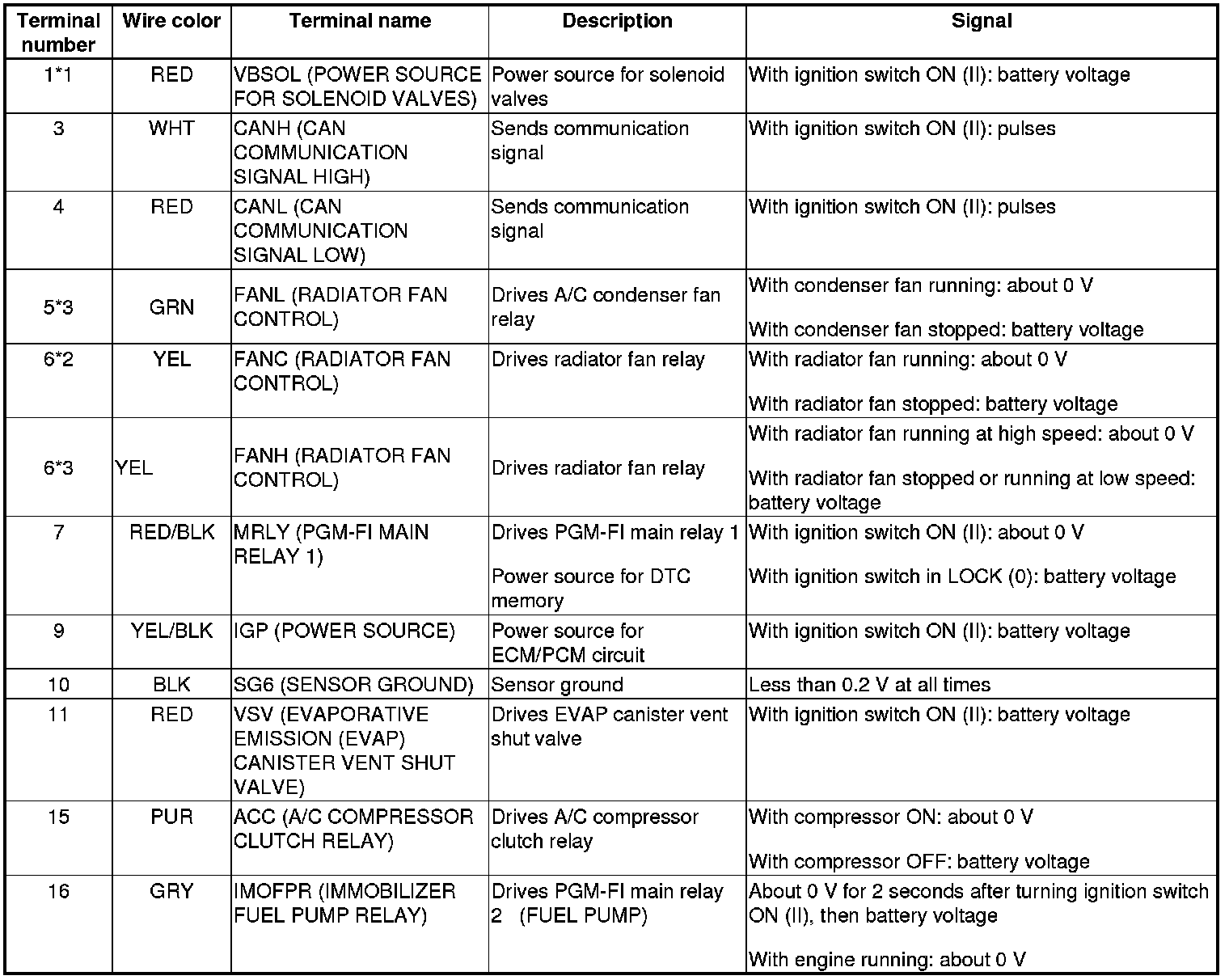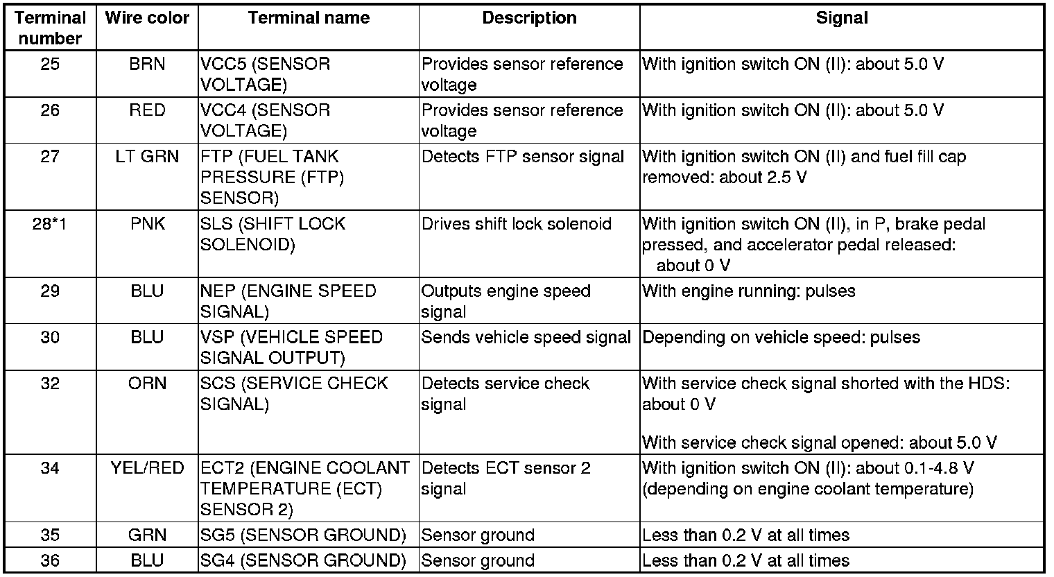 After the ignition switch is turned to LOCK (0), the ECM/PCM stays on for up to an hour. If the ECM/PCM connector is disconnected during this time, the ECM/PCM may be damaged. To cancel this mode, disconnect the negative cable from the battery or jump the SCS line with the HDS after the ignition switch is turned to LOCK (0).