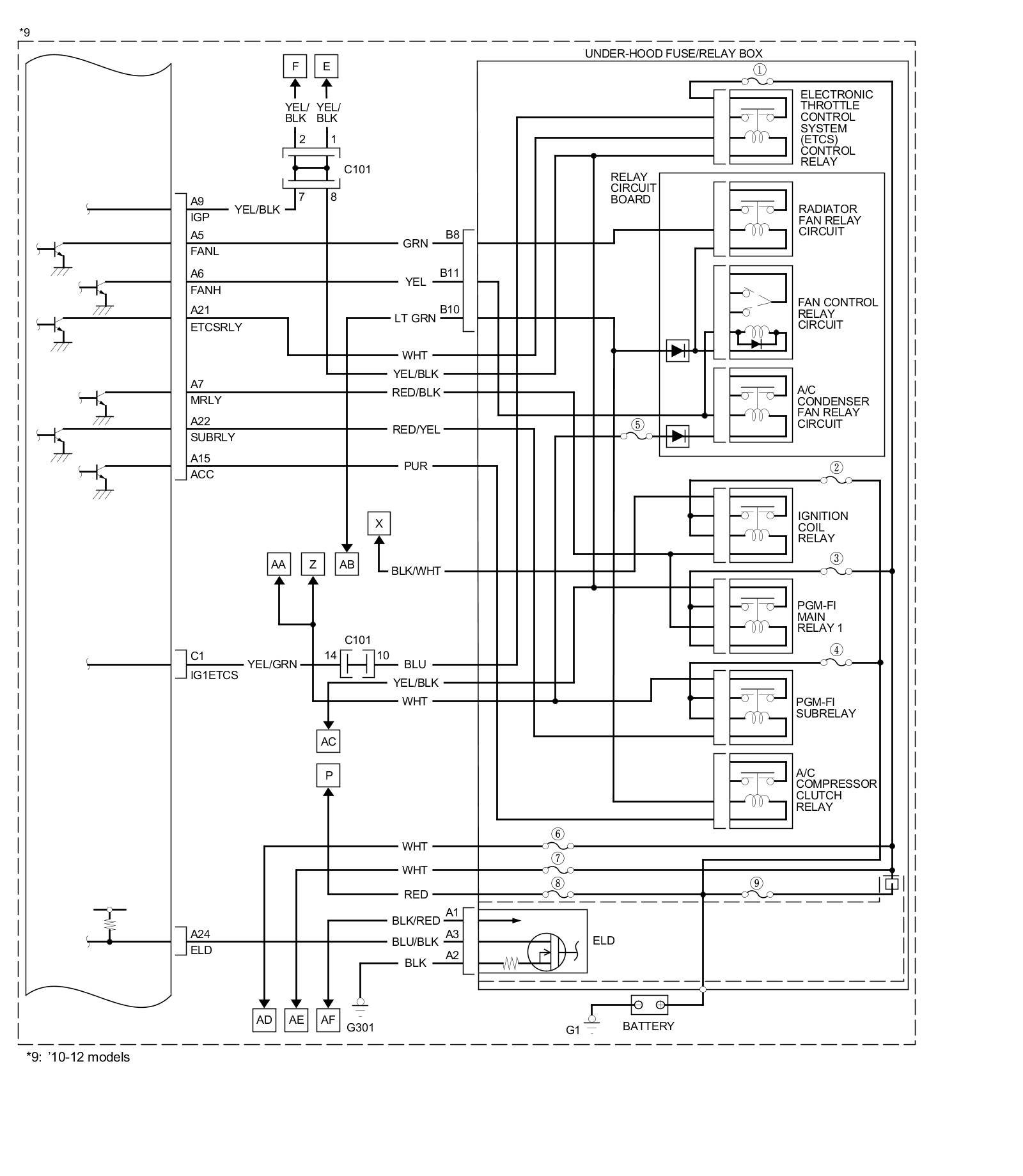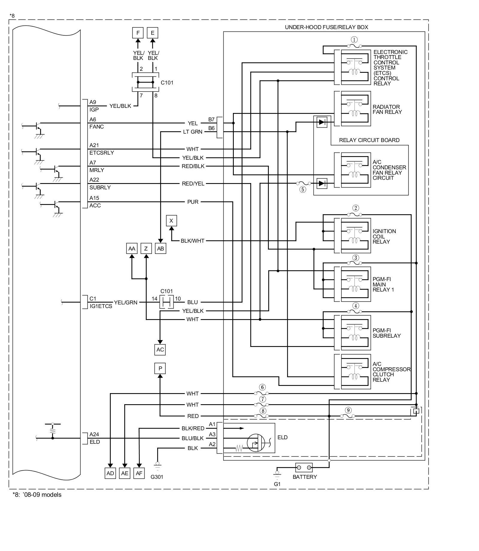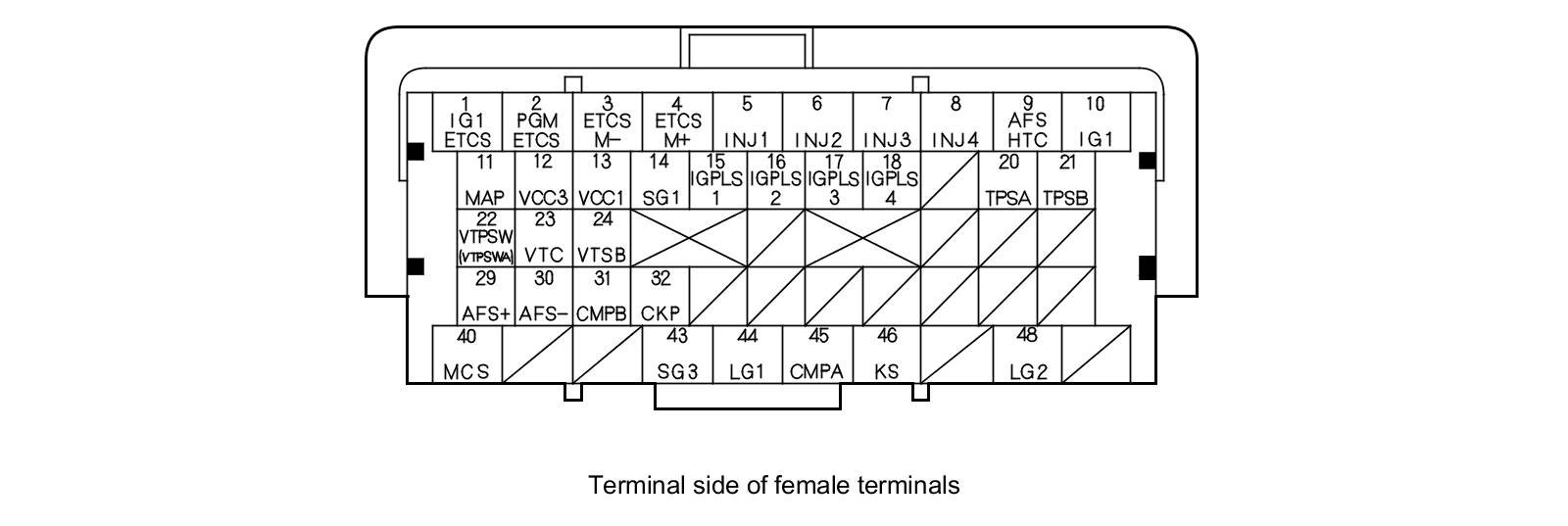 After the ignition switch is turned to LOCK (0), the ECM/PCM stays on for up to an hour. If the ECM/PCM connector is disconnected during this time, the ECM/PCM may be damaged. To cancel this mode, disconnect the negative cable from the battery or jump the SCS line with the HDS after the ignition switch is turned to LOCK (0).