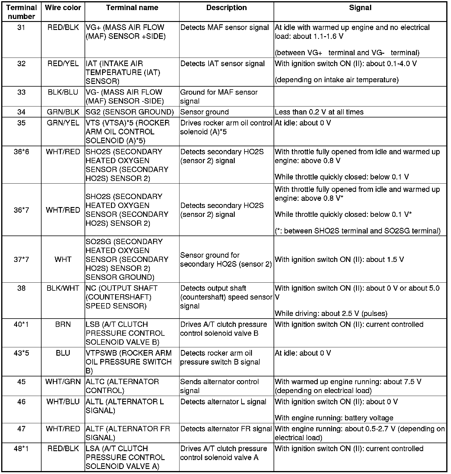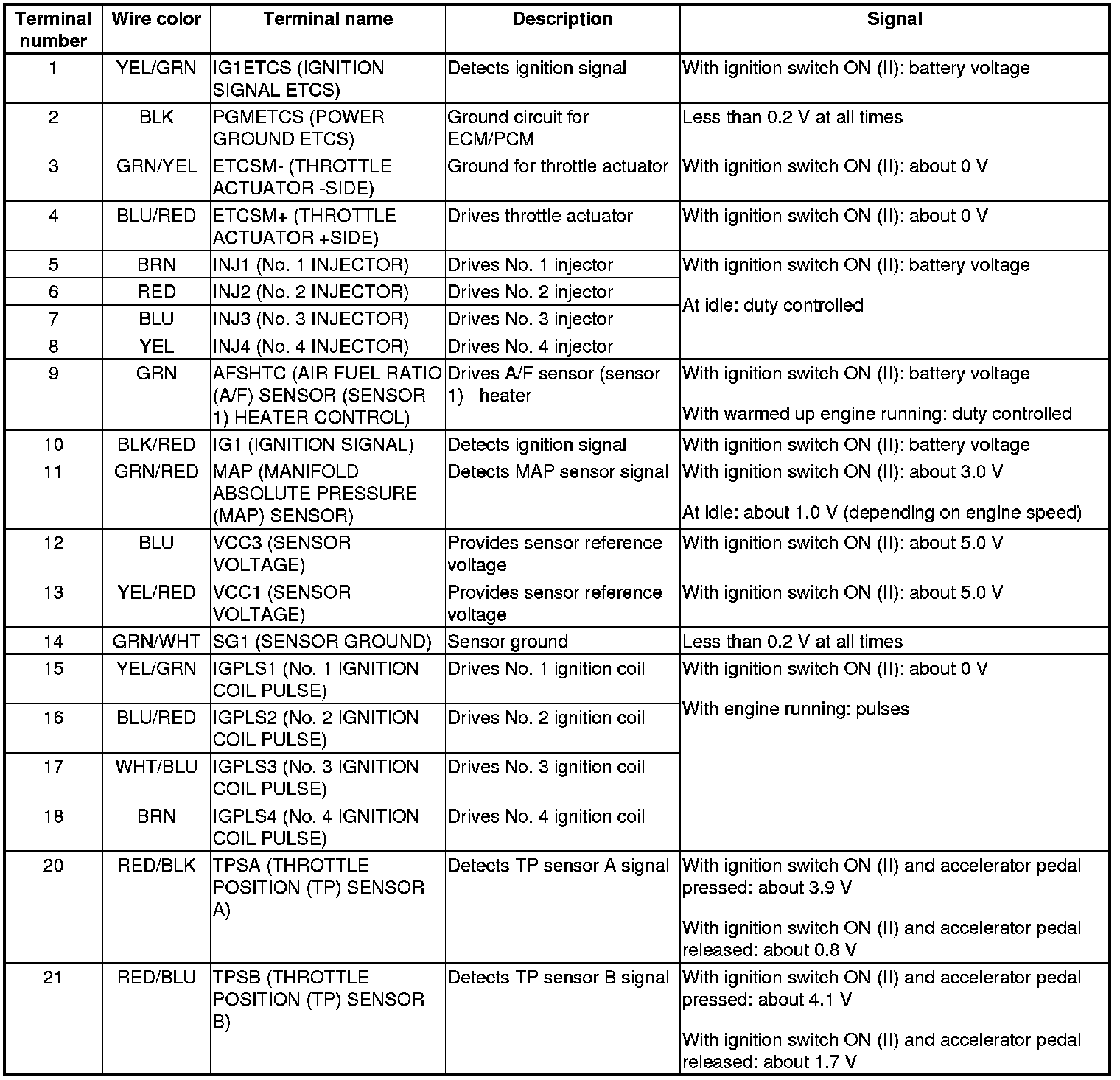 ECM/PCM Inputs and Outputs at ECM/PCM Connector A (square) (49P)