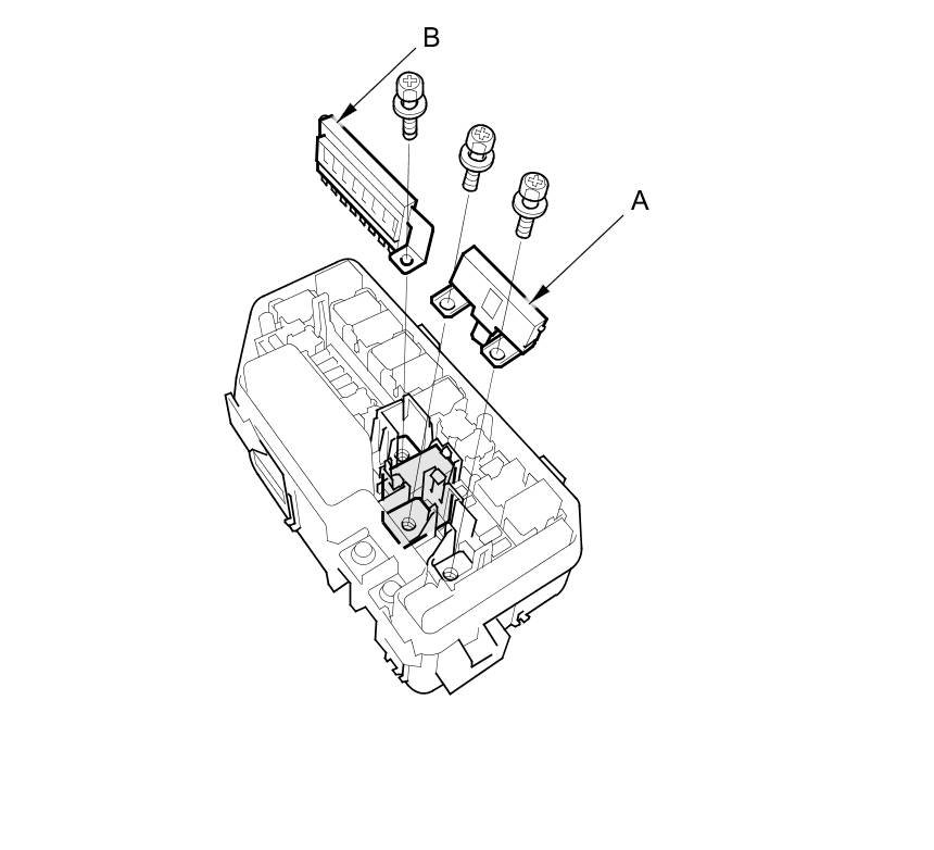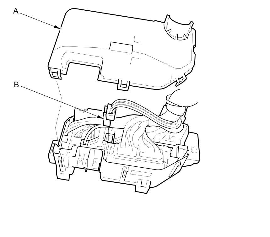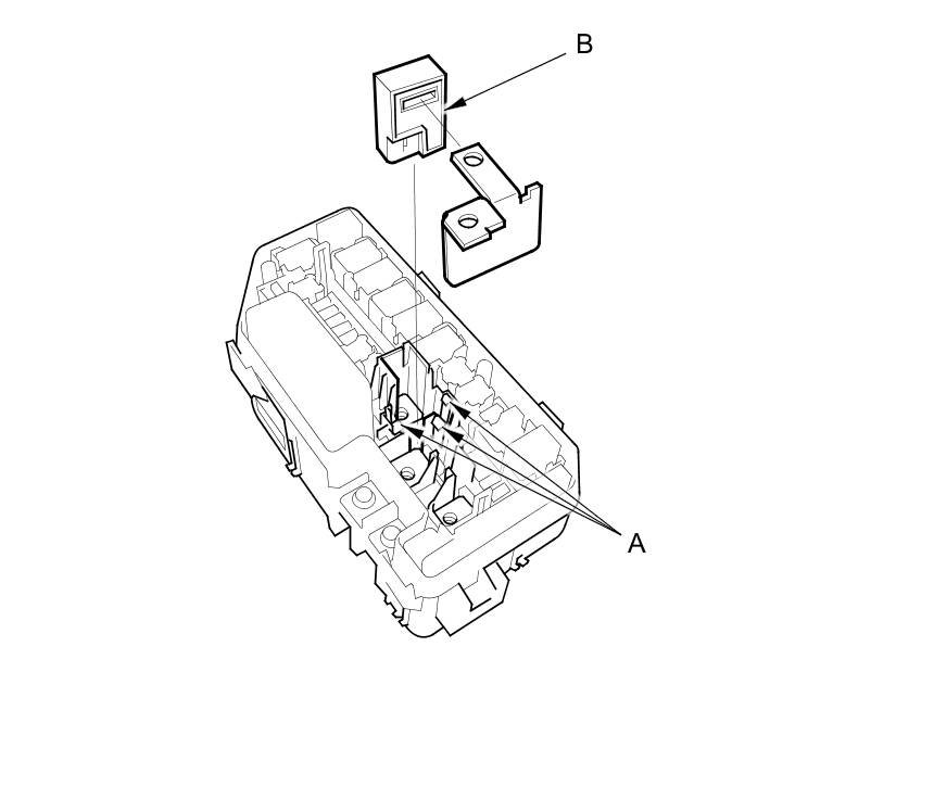 3. Remove the under-hood fuse/relay box (C) from the bracket.