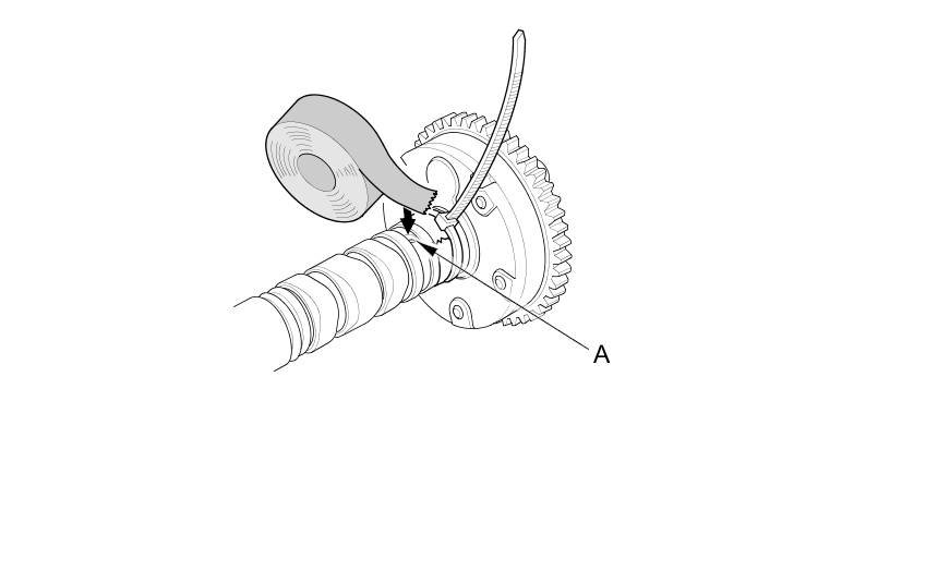 6. Seal the retard holes (A) in the No. 1 camshaft journal with tape and a wire tie.