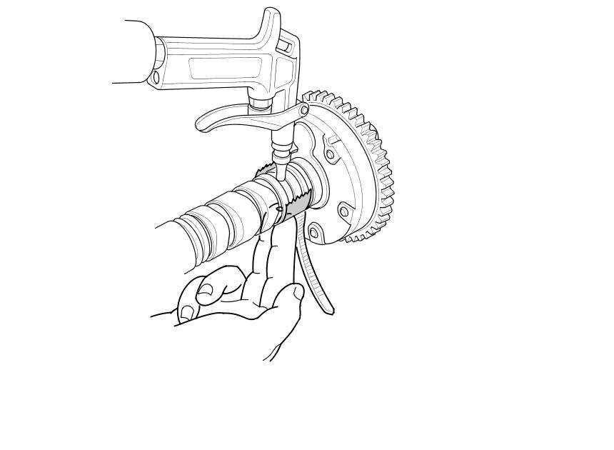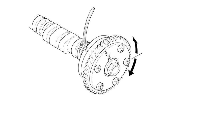 14. Hold the camshaft, and turn the VTC actuator clockwise until you hear it click. Make sure to lock the VTC actuator by turning it.