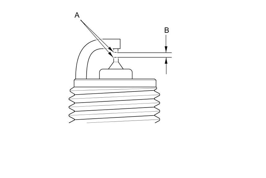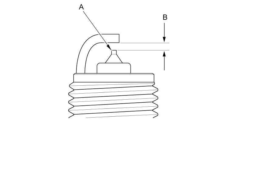 3. Replace the plug at the specified interval, or if the center electrode (A) is rounded, or if the spark plug gap (B) is out of specification, or if the spark plug electrode is dirty or contaminated. Use only the spark plugs listed.