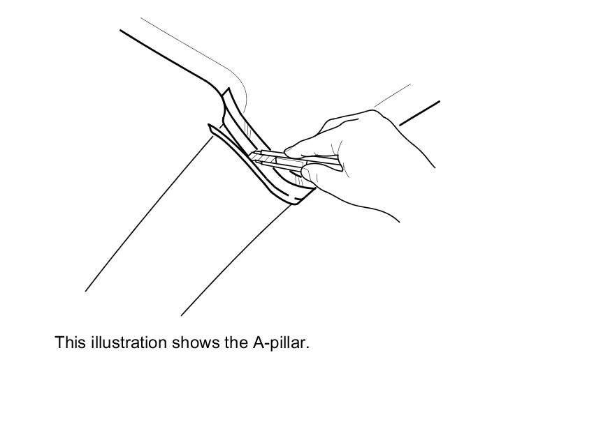 4. Carefully trim the headliner with a utility knife, reducing the overlap to less than 8 mm (0.3 in).