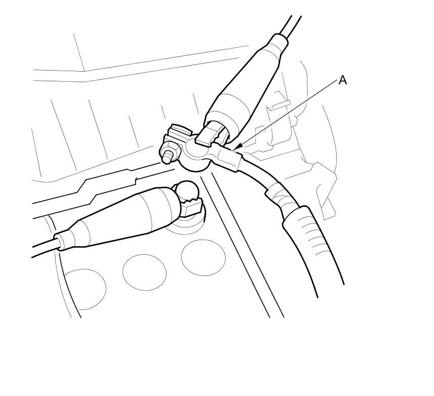 16. Disconnect the negative terminal (A) of the battery ground cable from the battery negative terminal.