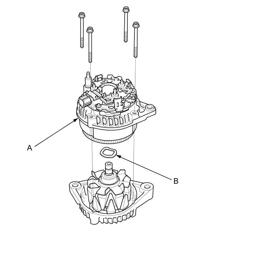 22. After assembling the alternator, turn the pulley by hand to make sure the rotor turns smoothly and without noise.