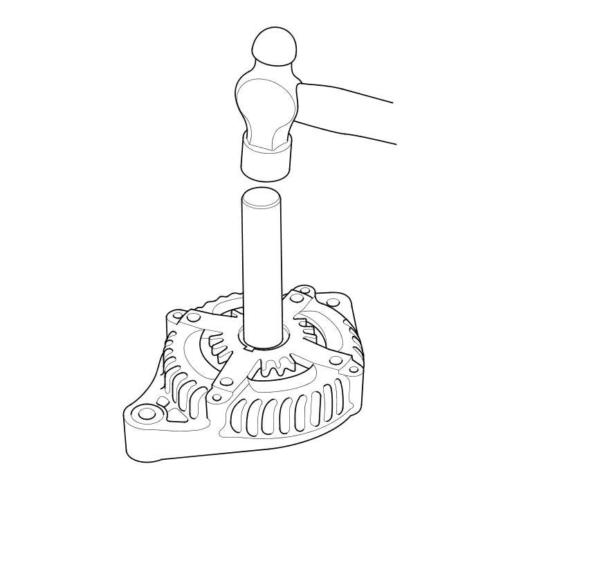 12. Install a new front bearing in the driver-end housing with a hammer, the driver handle, 15 x 135L, and the bearing driver attachment, 42 x 47 mm.