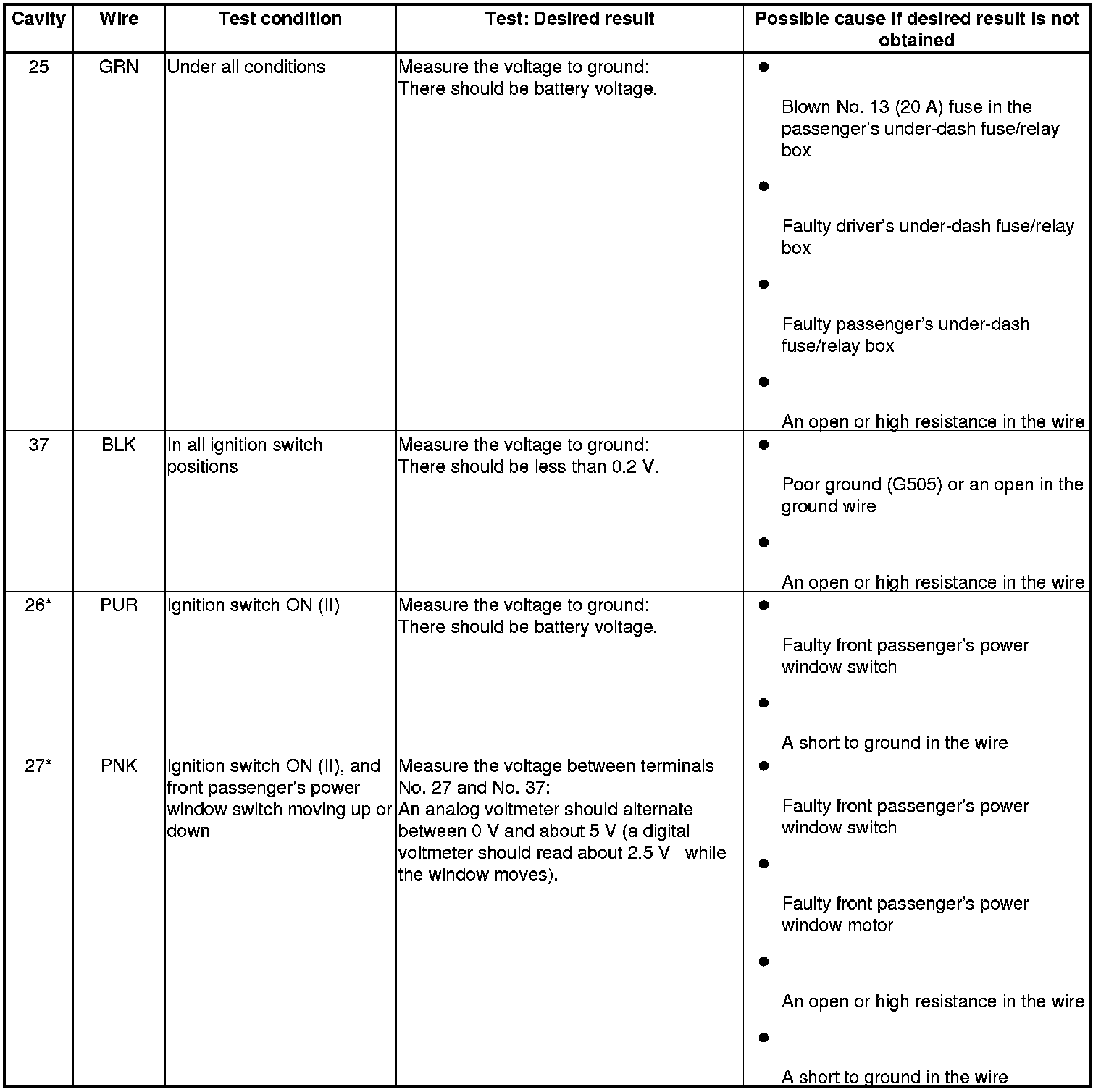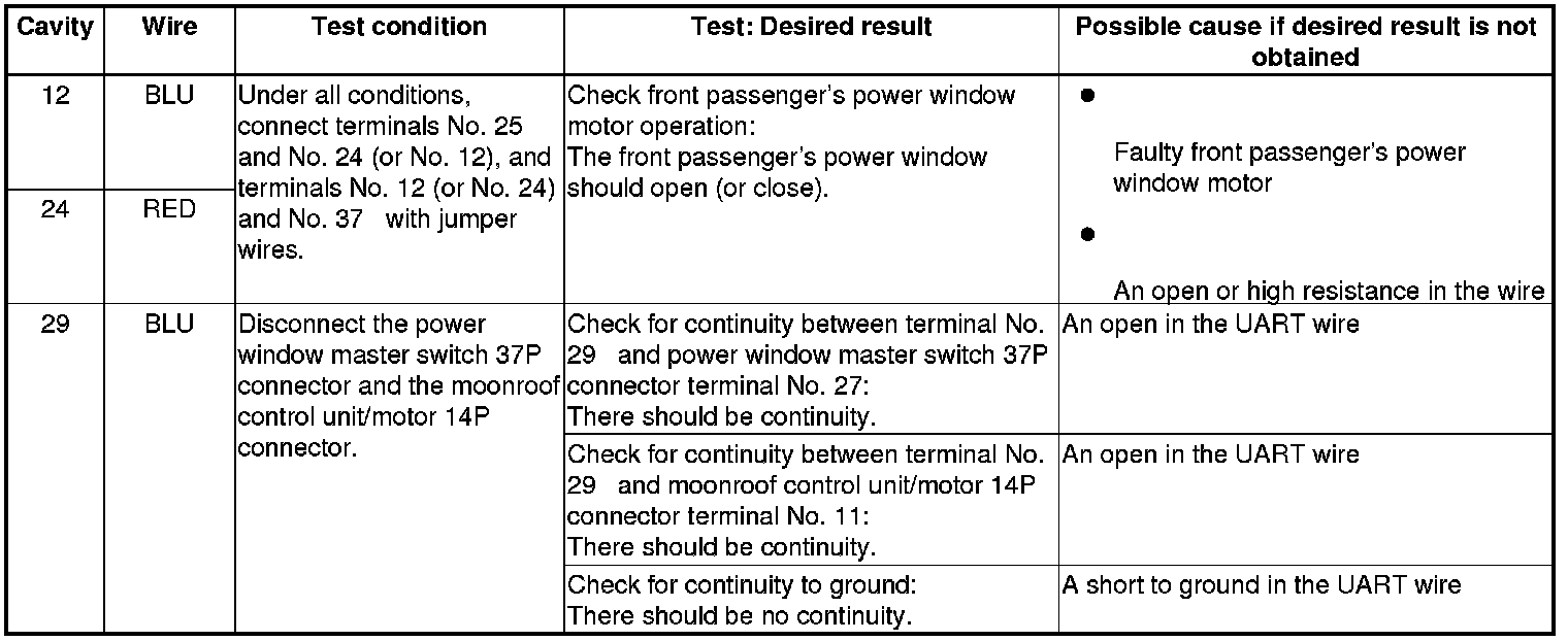 Front Passenger's Power Window Switch Input Test