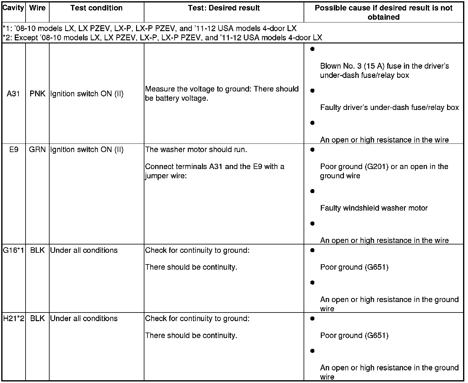 *2: Except '08-10 models LX, LX PZEV, LX-P, LX-P PZEV, and '11-12 USA models 4-door LX