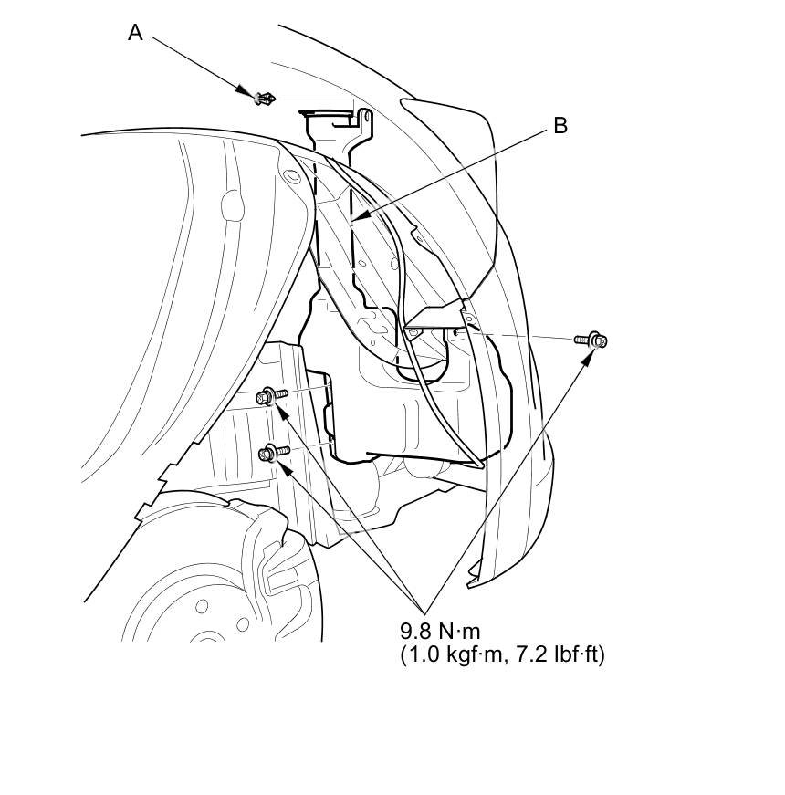 1. Remove the right inner fender Front Inner Fender Replacement.