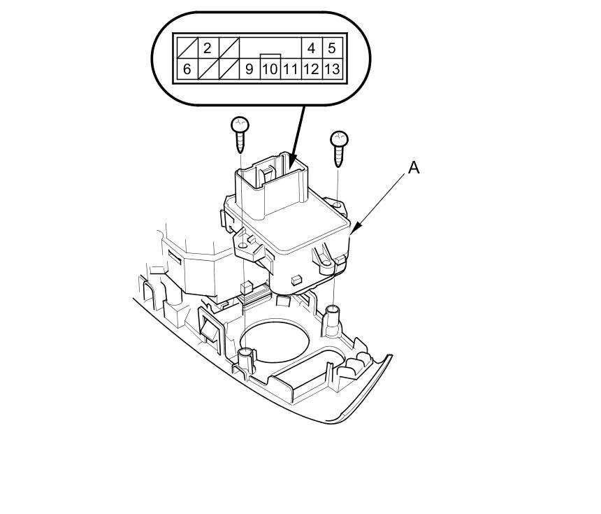 2. Disconnect the 13P connector from the power mirror switch (A).