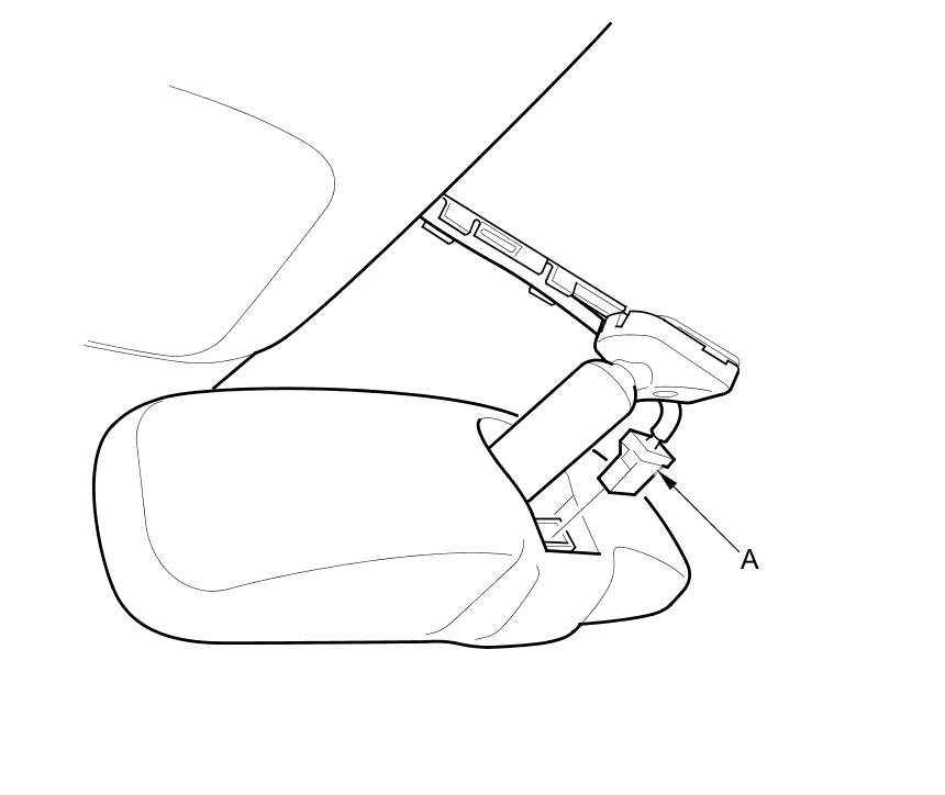 2. Disconnect the rearview mirror connector (A).