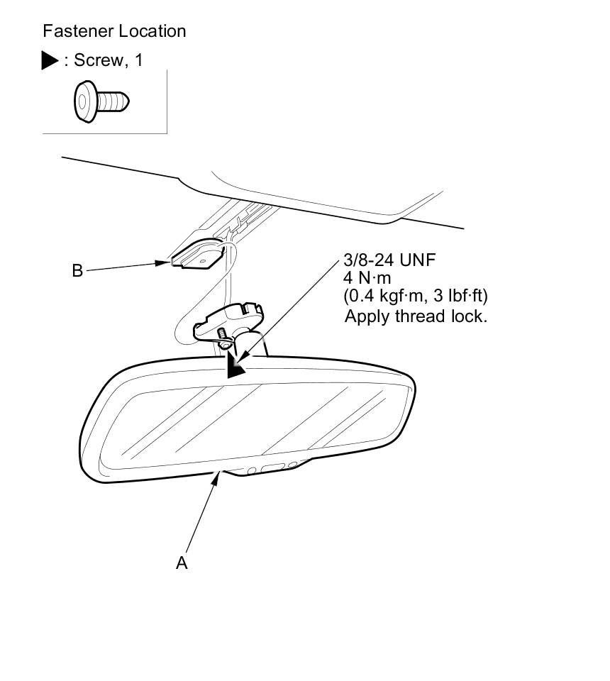 3. Loosen the screw with a TORX T20 bit, then slide the rearview mirror (A) rearward and off the mount (B).