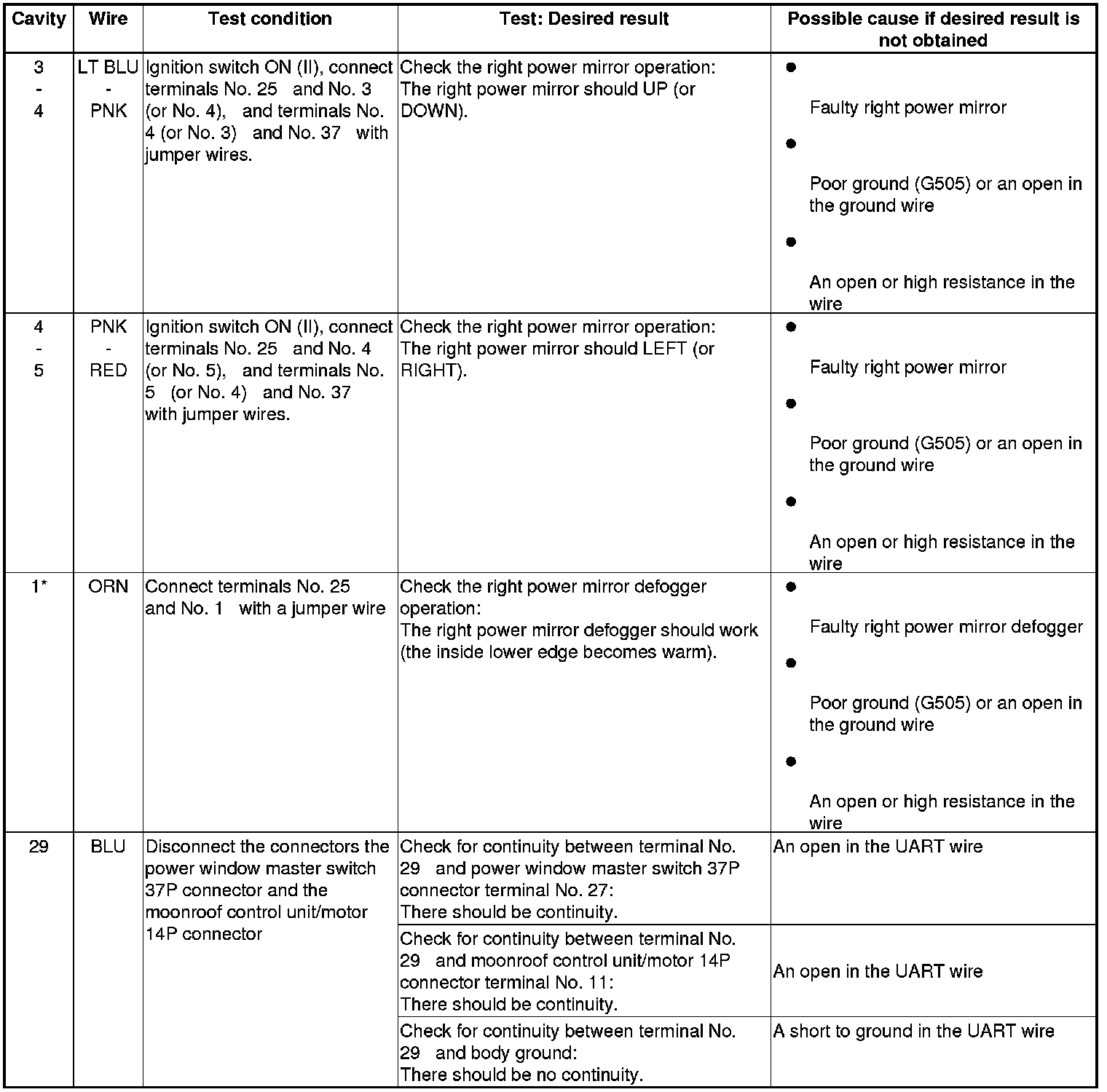 Power Mirrors (Front Passenger's Power Window Switch) Input Test