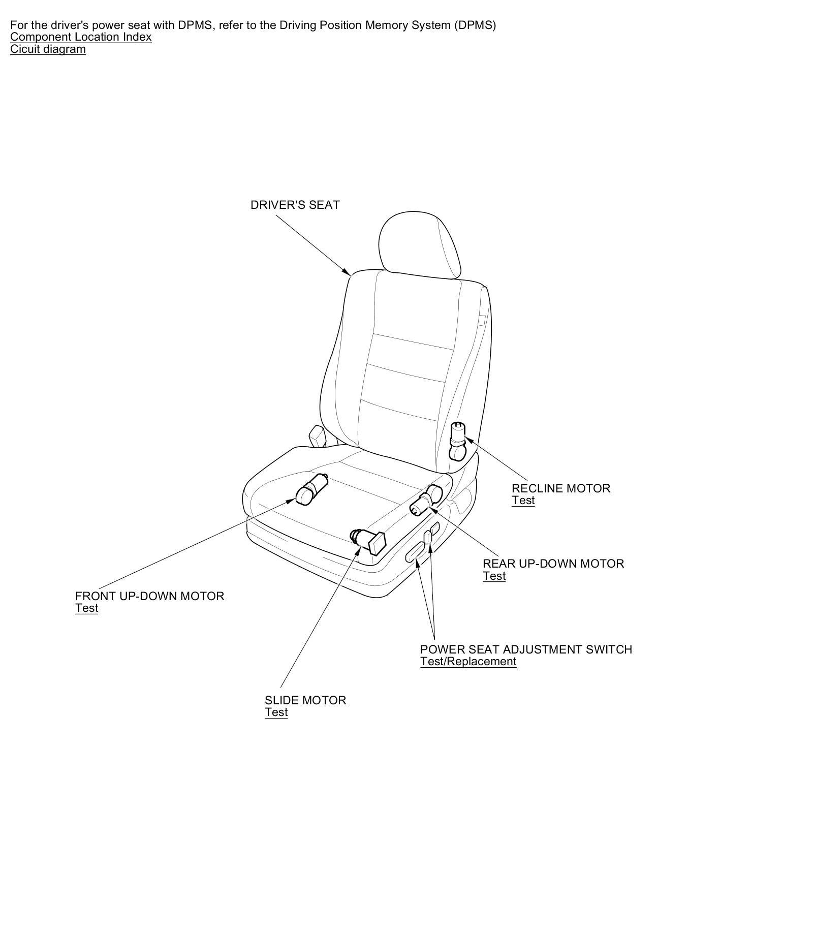Power Seats Component Location Index (Without Driving Position Memory System)