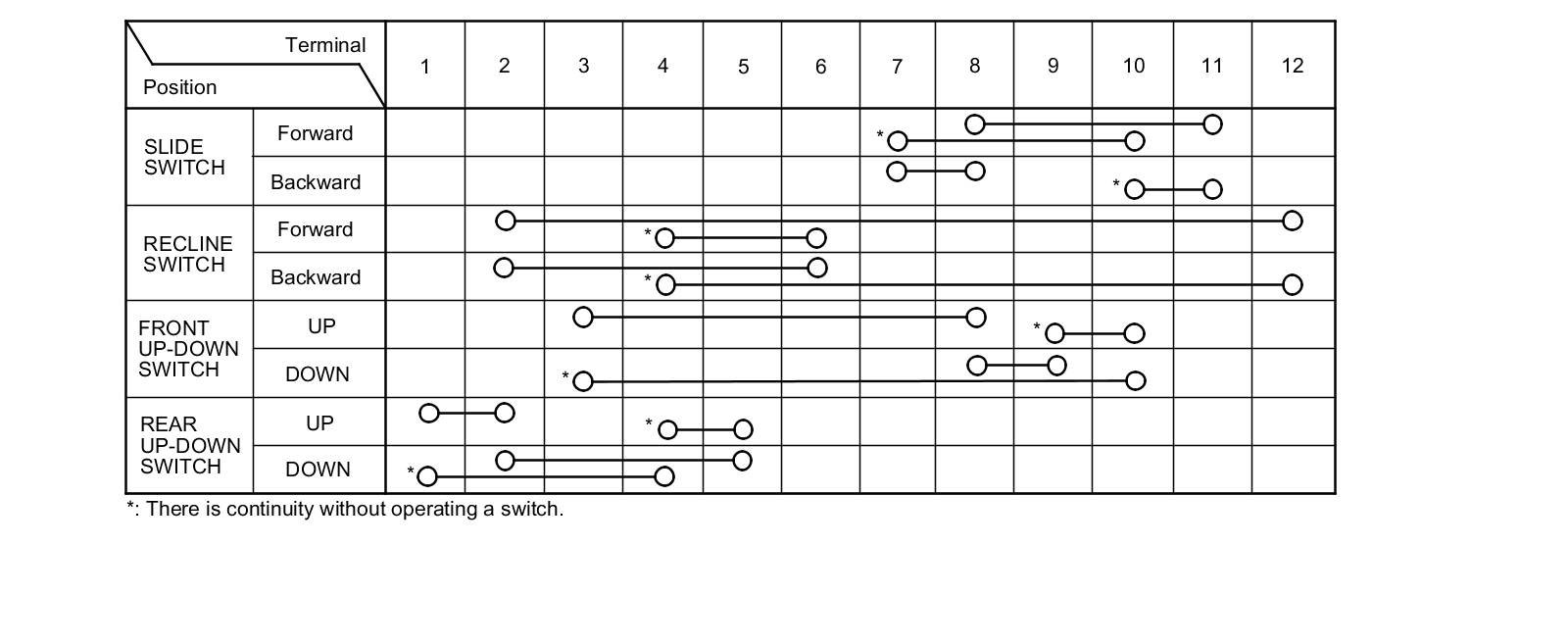 6. Check for continuity between the terminals in each switch position according to the table.